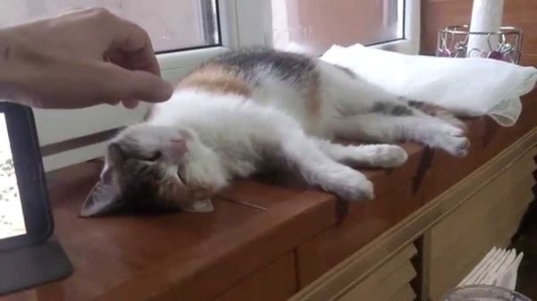Этот смешной и веселый котейка настолько устал, что хозяин может делать с ним...