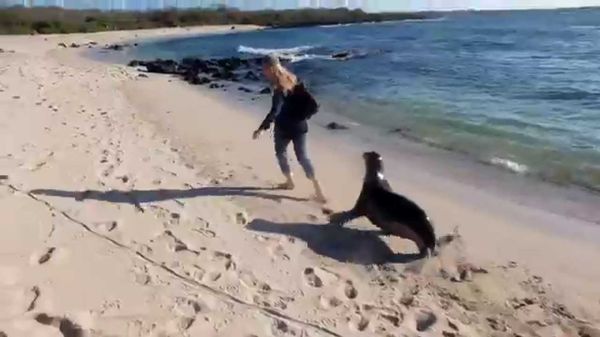 Похоже, этот веселый морской лев немного заскучал и решил привлечь внимание красивой девушки....