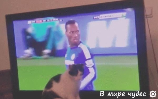 Кот увидел трансляцию футбольного матча по ТВ. Дальше произойдет самое смешное…