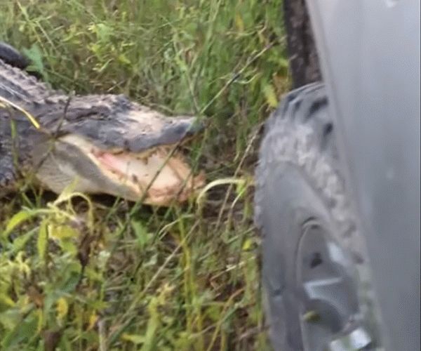 Владелец авто решил подразнить агрессивное животное. Не секрет, что у аллигатора очень мощные...