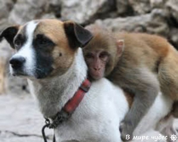 Эти два веселых друга поистине неразлучны: похоже, что пес готов вести на себе...