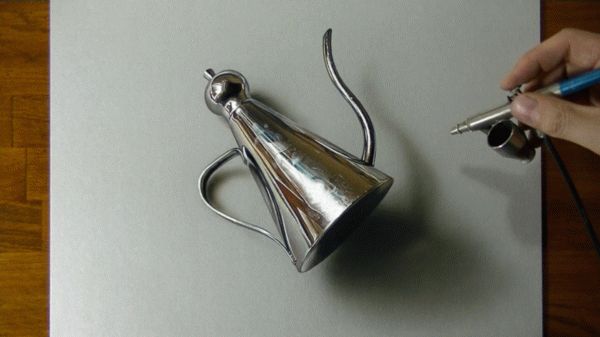Художник рисует на листе бумаги потрясающее своей реалистичностью изображение металлического кувшина. Кажется, будто...