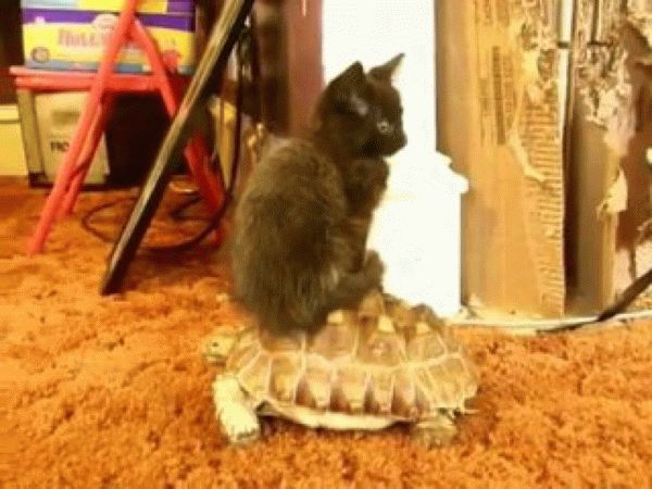 Эта смешная кошка явно чувствует себя королевой, а черепаха служит средством передвижения. Эксплуатация,...