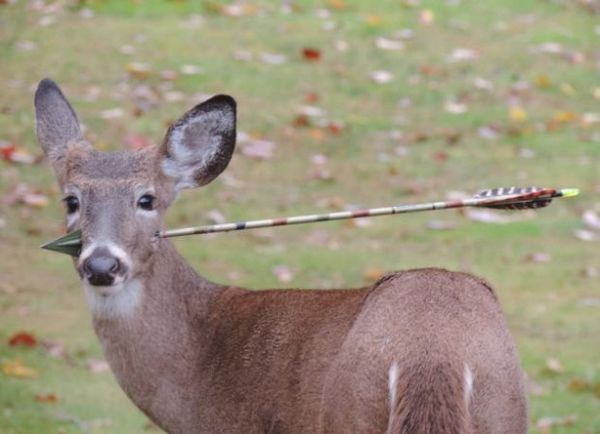 В парк города Нью-Джерси из лесу забрел олень, который стал жертвой криворукого лучника....