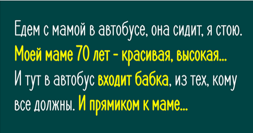 И тут в автобус входит бабка, из тех, кому все должны.