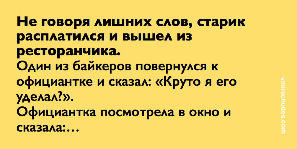 Старик стал серьезно обдумывать детали мести. Когда он ушел, хулиганы стали хвастаться перед персоналом, как им удалось поиздеваться и выгнать этого старика из заведения. Вряд ли они осознавали, что должно было произойти в скором времени.