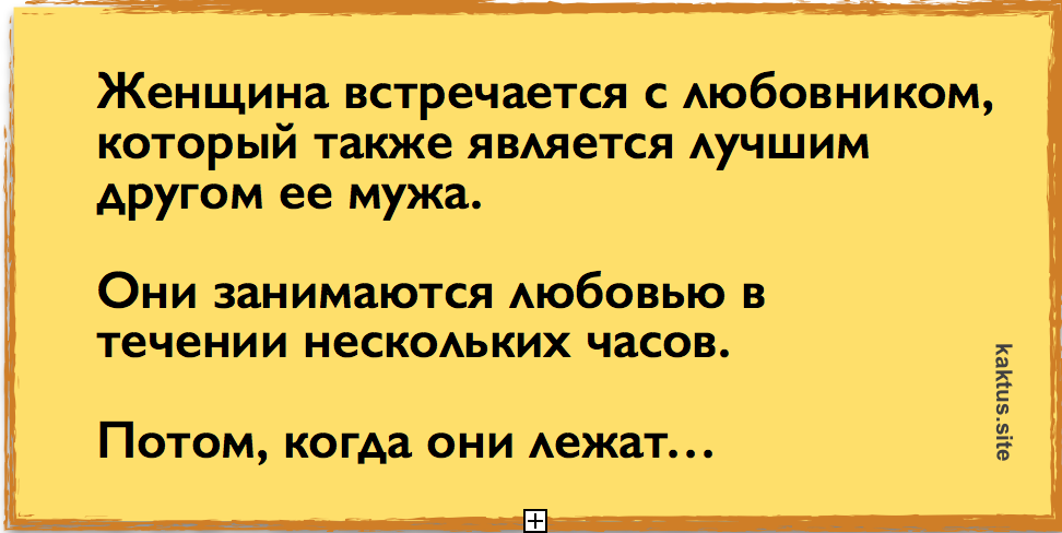 Она кладет трубку, и любовник спрашивает ее: «Кто это?»