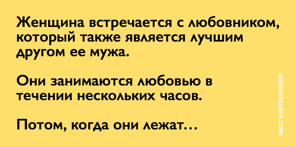Она кладет трубку, и любовник спрашивает ее: «Кто это?»