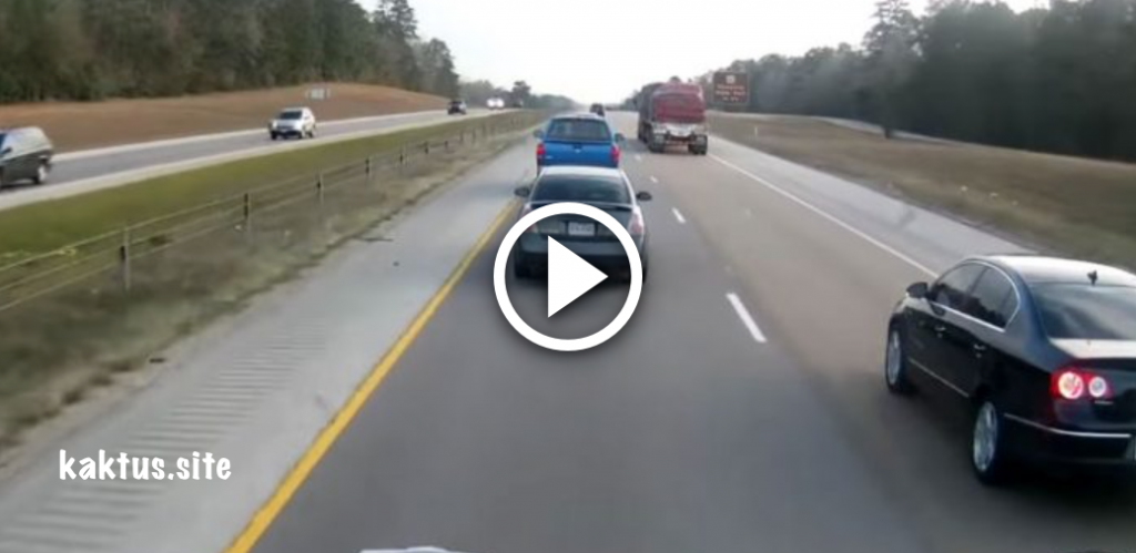 Это поразительное видео об очень непродуманном водителе, и о человеке в грузовике, который ехал по своей дороге.