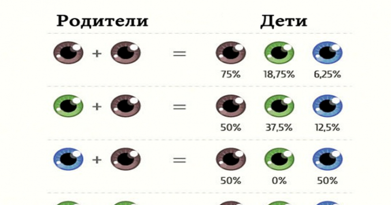 Этот информационный график был составлен на основе генетического кого и тщательного исследования глазного яблока. Наука утверждает, что внешность ребенка основывается на мутации генов. Читайте дальше, чтобы узнать, какой цвет глаз будет у Вашего будущего потомства!