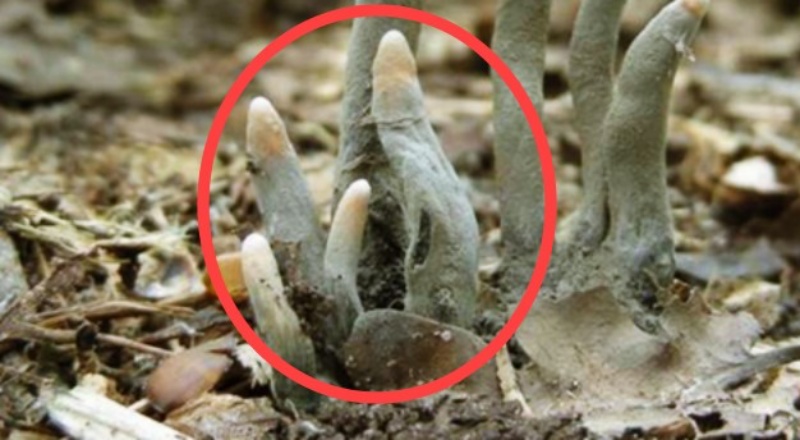Это очень странная и необычная вещь! По виду она напоминает руку, торчащую из-под земли. Это гриб под названием ‘’Пальцы мертвеца’’. Он может быть темным исветлым: все зависит от того, в какое конкретно время года Вы его встретите!