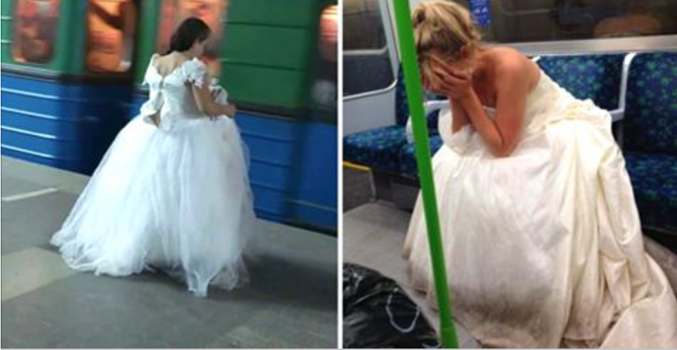 Конечно же, все пассажиры косились на меня: огромное свадебное платье, девушка в соплях и слезах — такое зрелище редко увидишь. И вот один молодой человек, видимо, решивший поднять настроение, подхватил меня на руки и вынес из вагона, словно он жених.