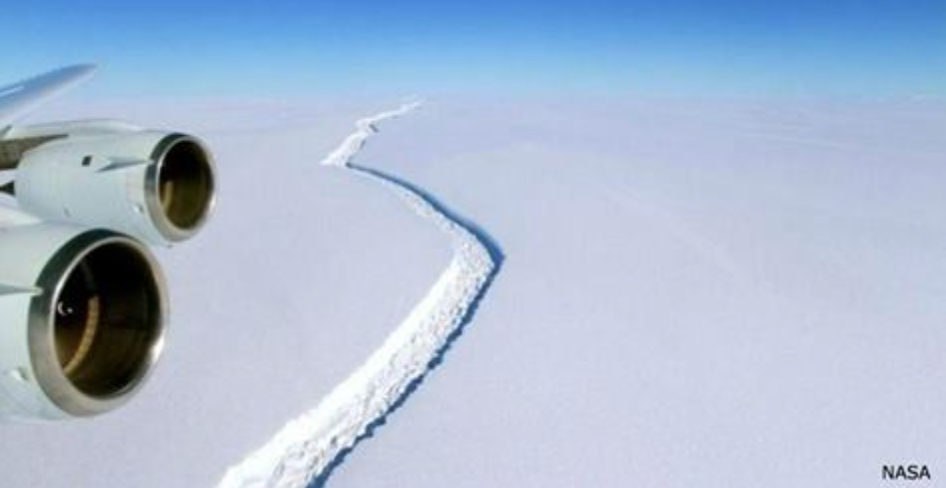 В антарктических льдах из-за глобального потепления снова неспокойно. На этот раз на леднике Ларсен С появилась огроменная трещина, и скоро его часть превратится в небывалый по размерам айсберг.