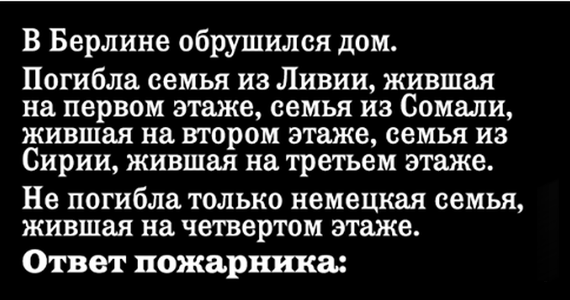 Ответ пожарника: «Дело в том, что немецкая семья в это время была на работе».