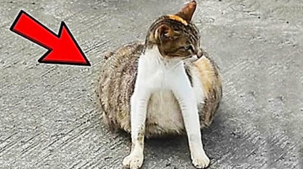 Бідна кішка жила на вулиці, і явно відчуваючи дискомфорт через величезний живіт.