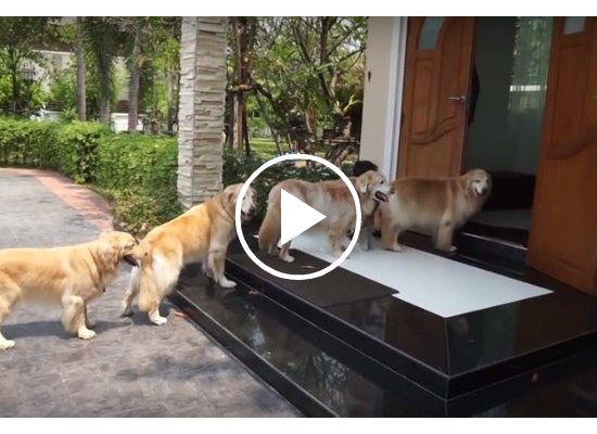 Хозяйка этих псов научила их к одной интересной процедуре…