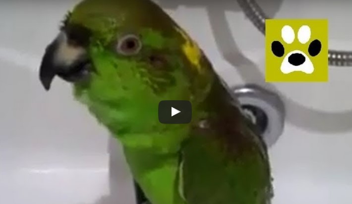 У попугая, ставшего героем нашего ролика, тоже есть занятная привычка. Микеша любит петь, причем когда красавец амазон поймает вдохновение, остановить его весьма сложно. Здесь, например, птица находится под душем, но, как видишь, на его голос льющаяся сверху вода никак не влияет.