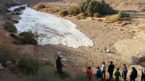 Такое чудо — результат длительных проливных дождей, которые прошли в горных районах в нескольких километрах от пустыни. Стоит отметить, что многие из местных жителей впервые видят, как течет река, и их восхищению нет предела! Для тех, кто не силён в географии: Син берёт свое начало в кратере Рамон (расположен в 85 километрах на юг от города Беэр-Шева) и впадает в Мертвое море.