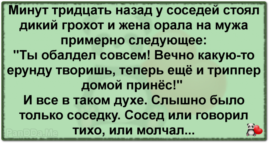 «Ты обалдел совсем! Вечно какую-то ерунду творишь, теперь ещё и триппeр домой принёс!»