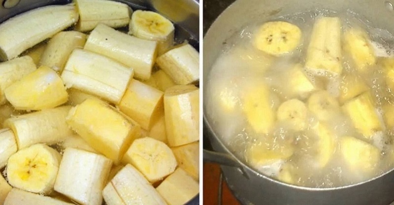 - Вскипяти воду с корицей. Помести в теплую воду бананы, дай воде закипеть.
