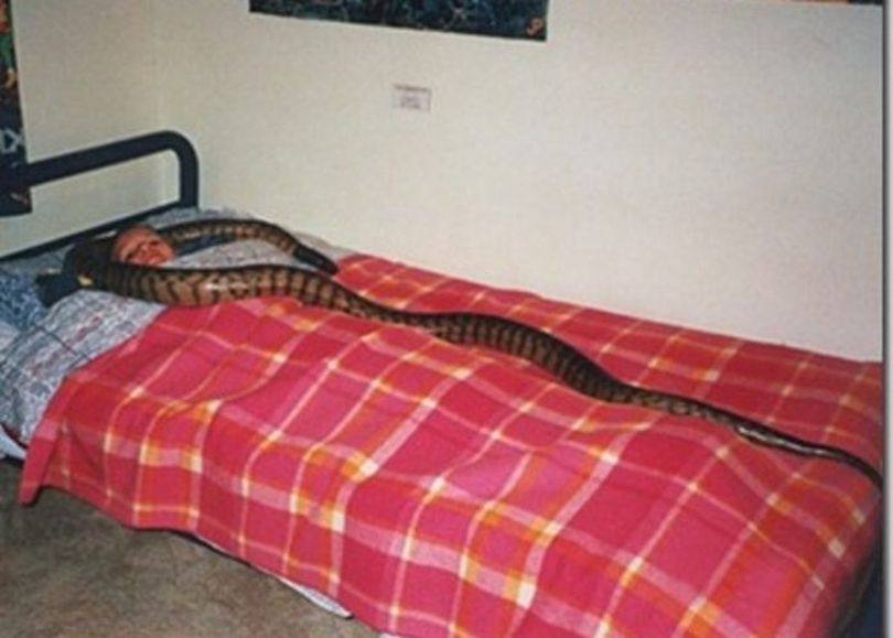 Когда Вет Лей услышал историю этой дамы, он спросил ее: «Ваша змея засыпает рядом с Вами в постели или же лежит рядом, выпрямившись во всю длину?»