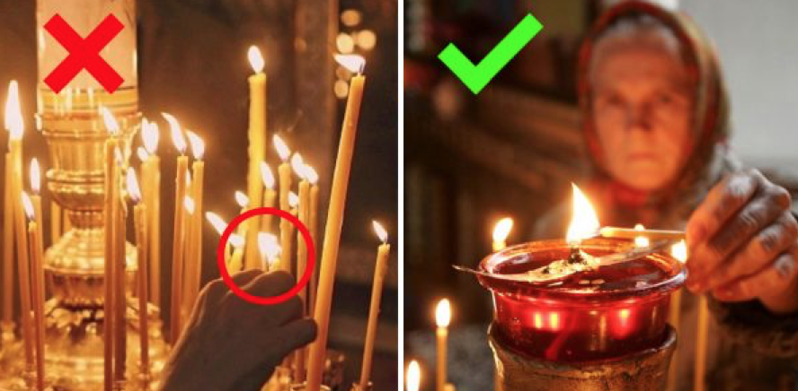 В храме нельзя зажигать свечу от спичек или зажигалки, только от лампадки, что горит в центре. Ни в коем случае не зажигай свою свечку от рядом стоящих, чтобы не перетянуть на себя чужие проблемы. Также не позволяй другим поджигать от твоей, чтобы они не отобрали твое счастье.