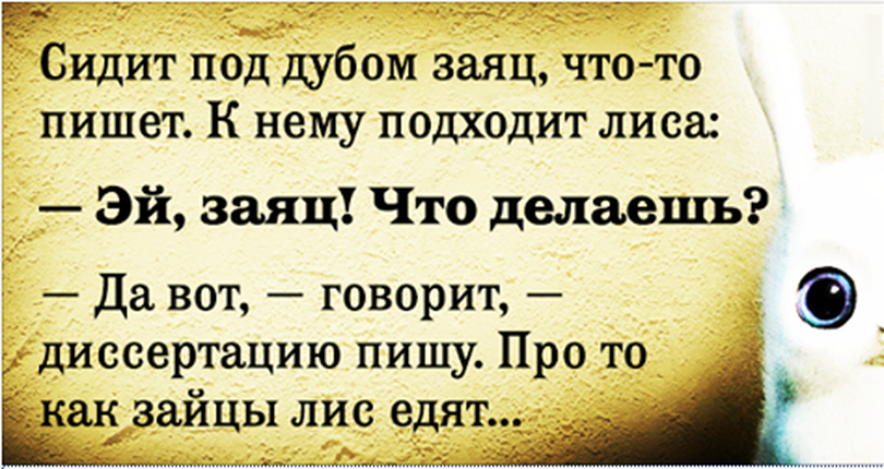 — Да вот, — говорит, — диссертацию пишу. Про то как зайцы лис едят.